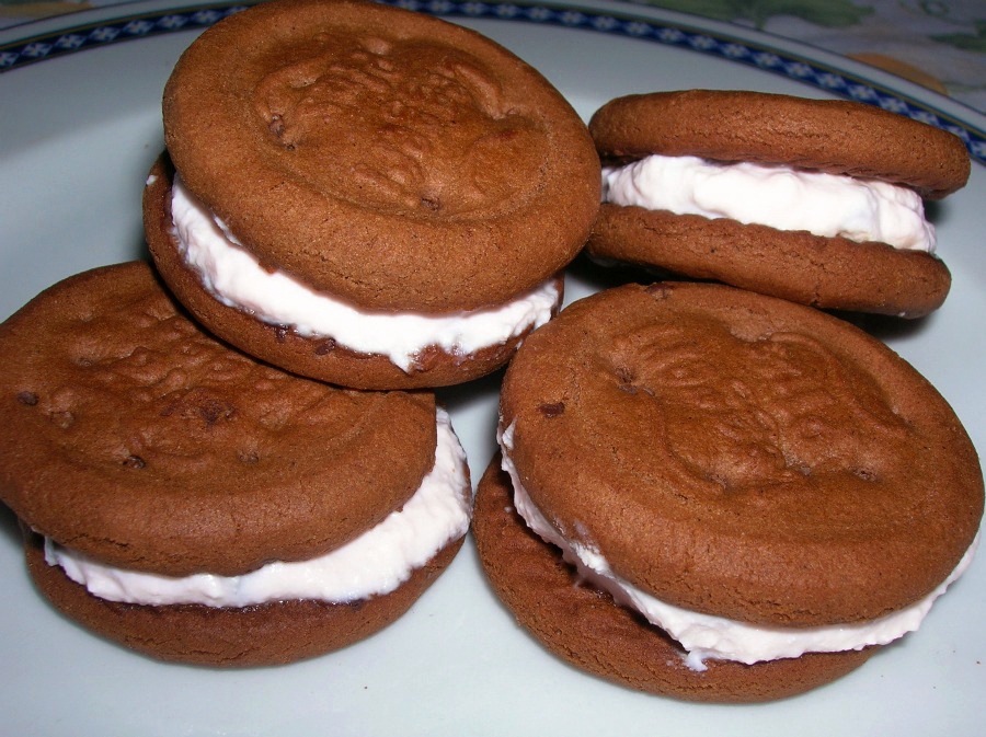 Mescolate alla ricotta l’alchermes nella quantità di vostro gradimento e le gocce di cioccolato; se volete aggiungete dello zucchero a velo! Spalmate in mezzo a due biscotti al cacao…pronti!