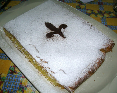 Cuocete in forno a temperatura media per circa mezz’ora. Quando la torta si รจ intiepidita cospargete la superficie con lo zucchero vanigliato. Io l’ho decorata facendo un giglio di Firenze con il cacao in polvere utilizzando questa sagoma:
