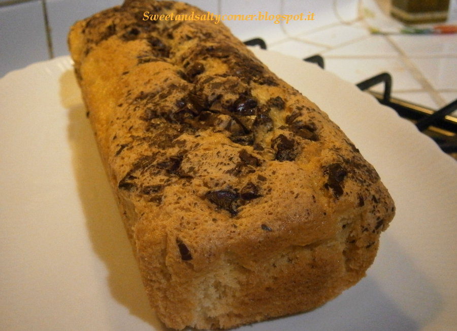 Ho distribuito sulla superficie del plumcake il cioccolato fondente sminuzzato e ho infornato a 170° per circa 25 minuti. Il plumcake è cotto quando bucandolo con uno stuzzicadenti questo rimane asciutto!